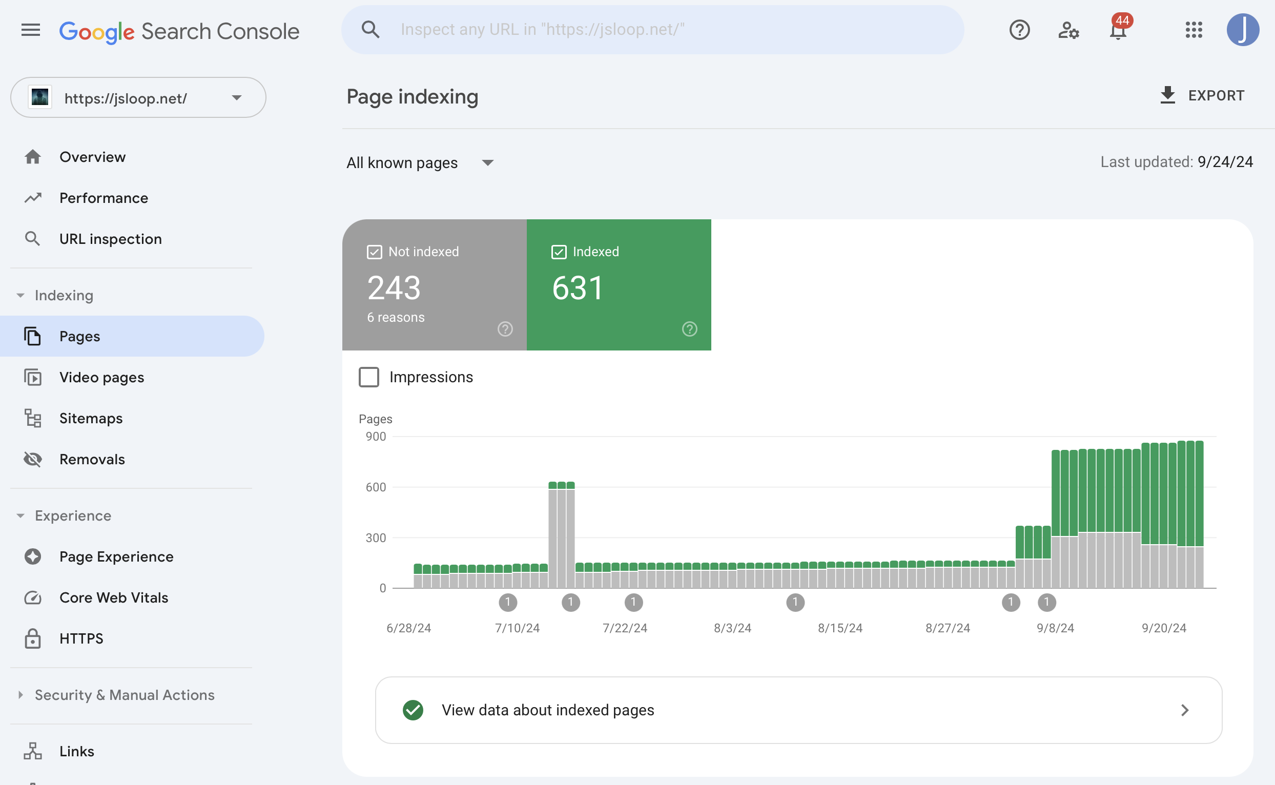 Now 631 pages are indexed. So Google has now started indexing pages quite okay I think.