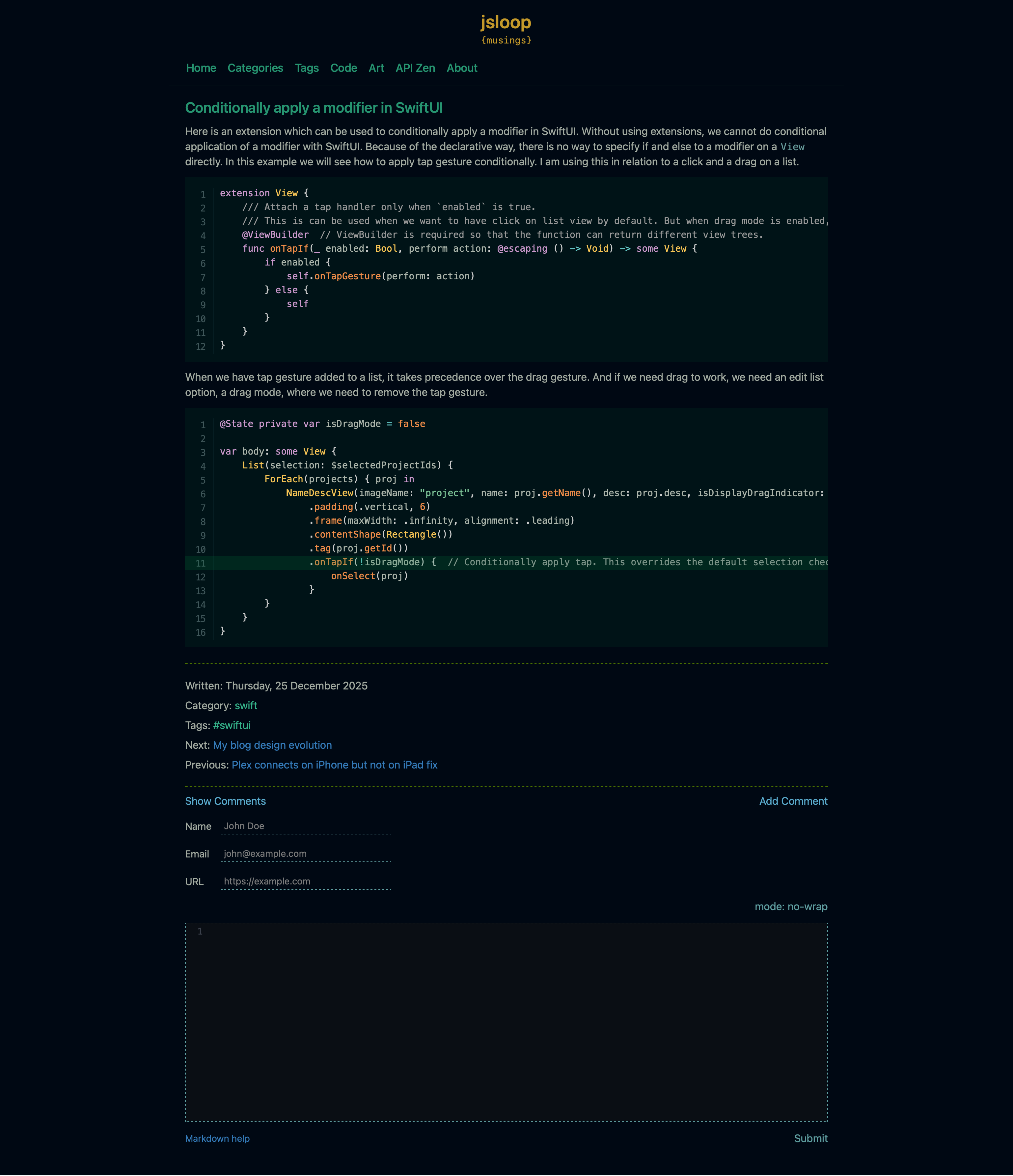 I took down my blog in 2018 and started another one later focusing mainly on iOS. I later imported my previous posts into this blog. This also used Blogger with the Minima Black theme customized. I wanted to try a light theme this time.