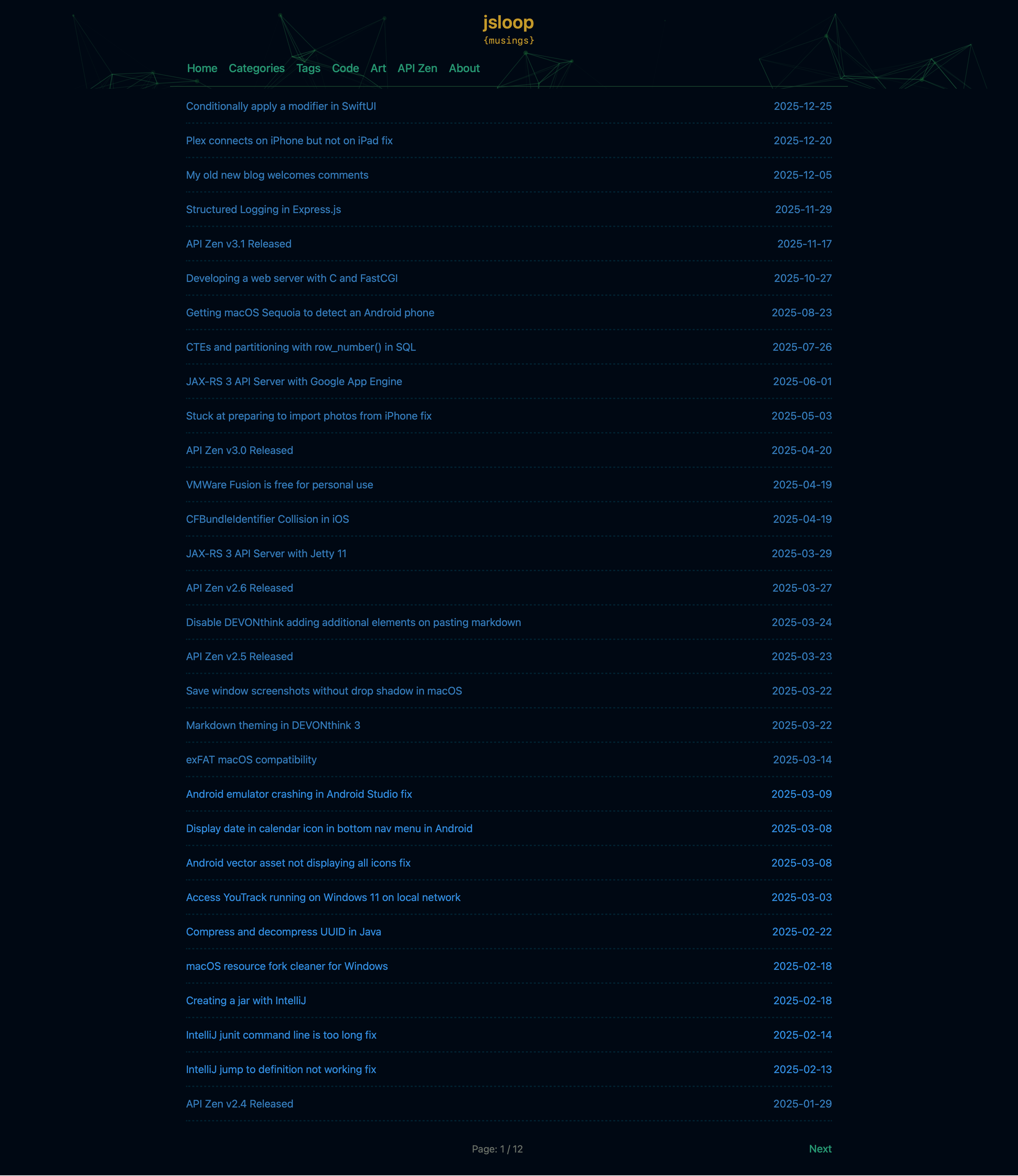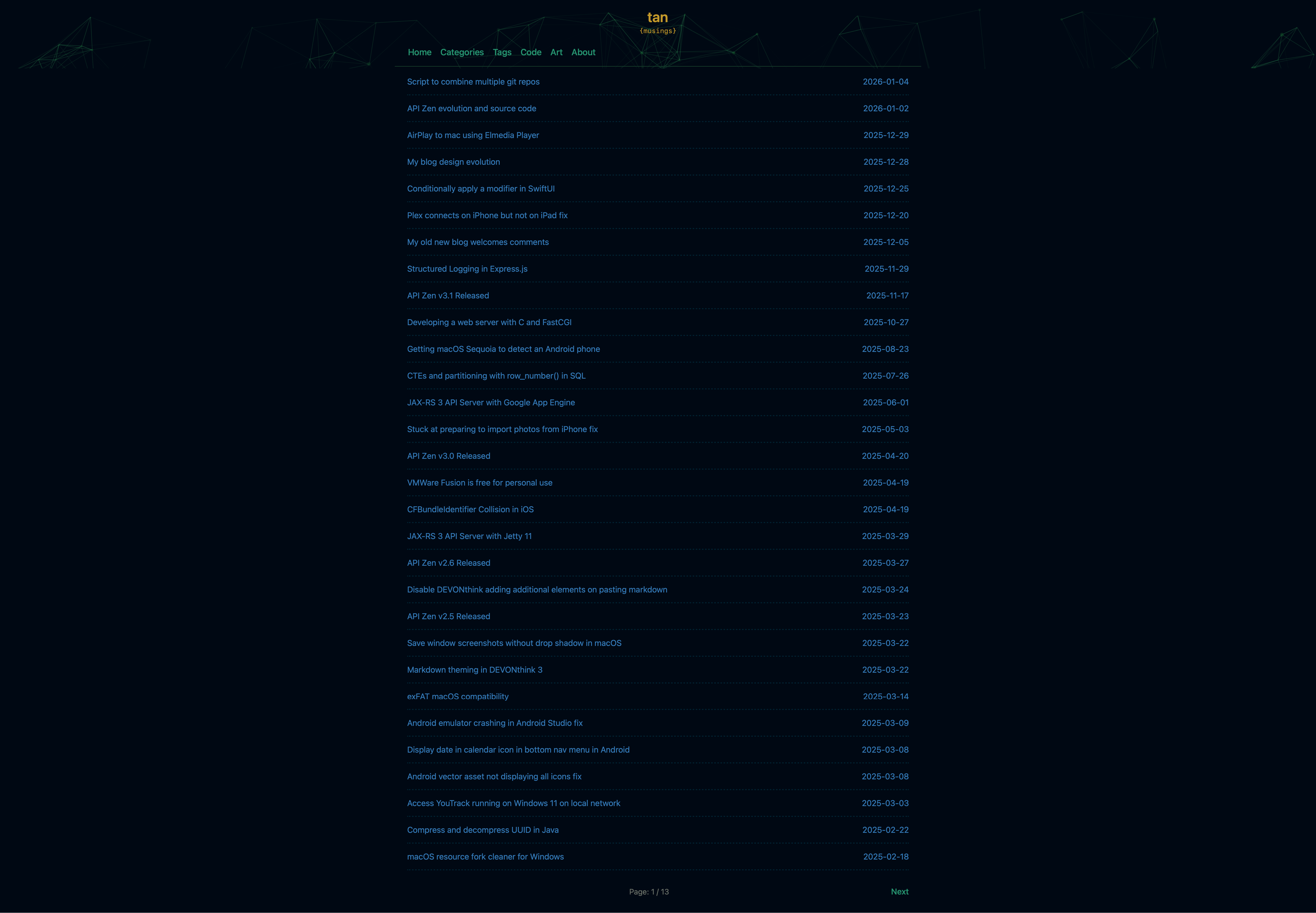 I now added the particles.js effect I was using previously. At that time it appears on all pages. Now it's only on main pages for distraction free reading with enhancements for mobile view.