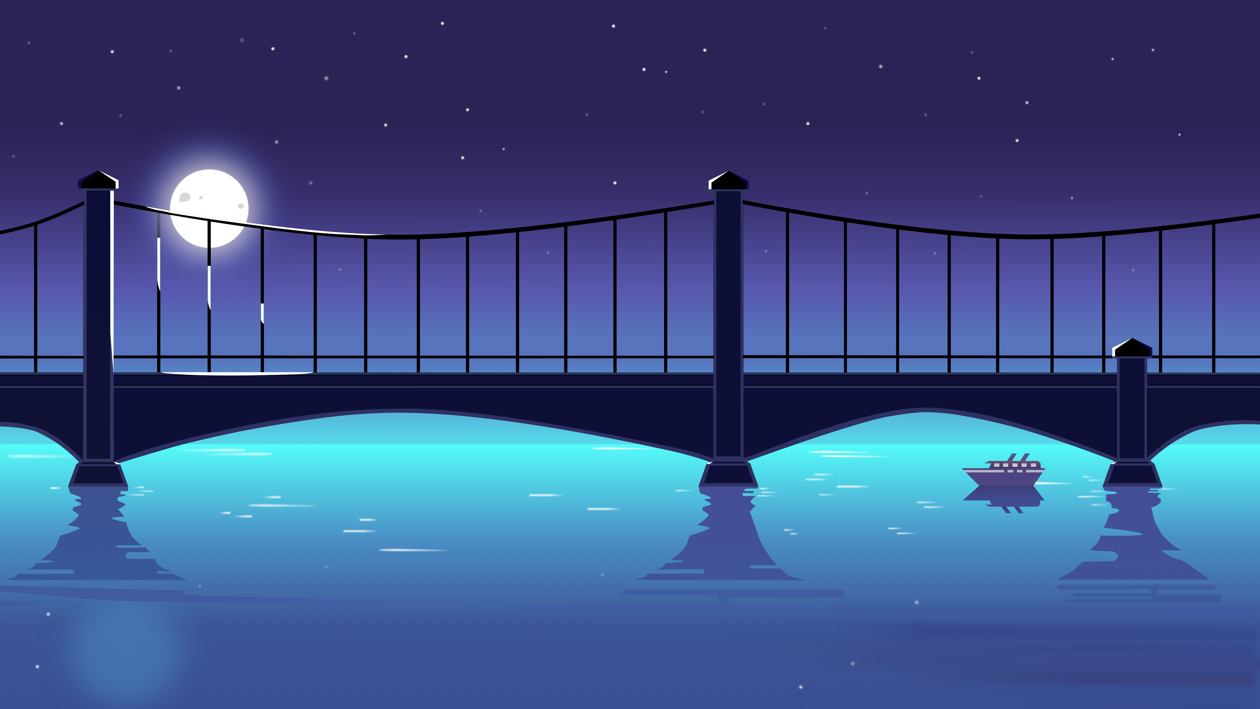 Evening bridge based on a reference image. Continuing my vector art practice using Sketch app.
